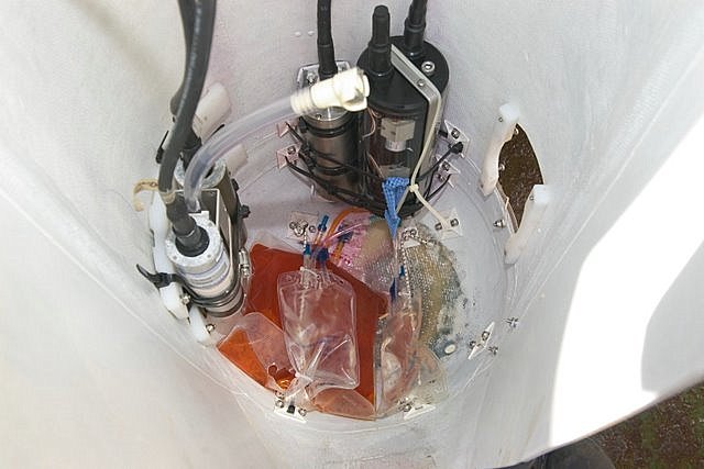 to a blank solution and a known standard. Thus, ‘onboard’ 2-point calibrations (standard and blank) can be carried out during deployment. This has the advantage that a correction for any effect that pressure and/or temperature may have on the colorimetric system can be applied to the data.