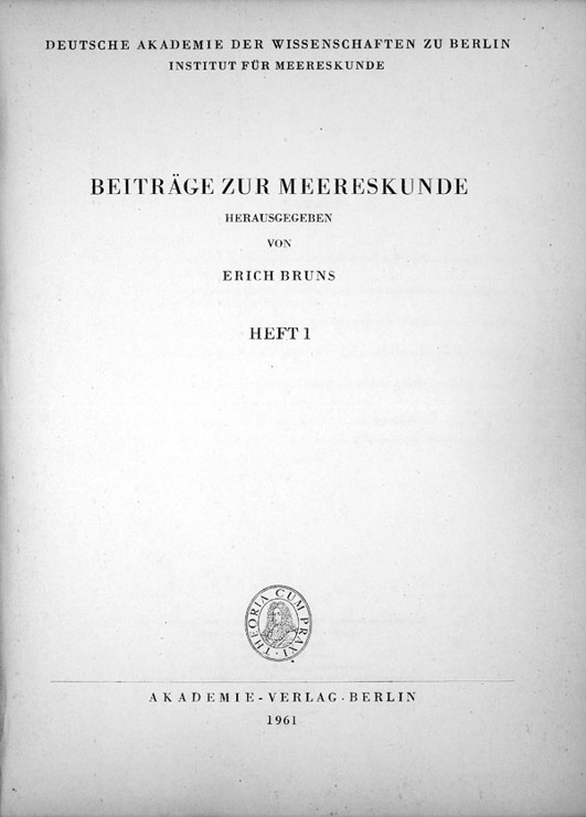 Marine optics programme started at Institute for Marine Research in Warnemünde with work by Hartmut Prandke on light scattering