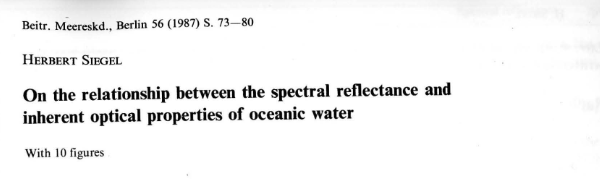Herbert Siegel extended the programme with measurements of spectral reflectance and inherent optical properties in different water types (i.e. dominated by phytoplankton, sediments or CDOM).