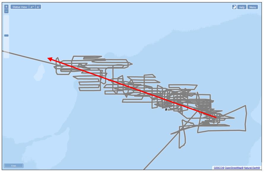 Bei der von der Arbeitsgruppe Ho verwendeten Dual Tracer Methode werden zwei inerte Gase, Schwefelhexafluorid (SF6) und das leichtere Isotop des Heliums (3He) in das Oberflächenwasser gegeben und die Konzentrationsänderung mit der Zeit bestimmt. Diese Technik erlaubt die Trennung des Gasaustauschs von der Durchmischung, um die Gastransfergeschwindigkeit zu berechnen. Die örtliche Bestimmung des Tracers gehört dabei zu unseren täglichen Aufgaben, um zwei Mal täglich (6 und 18 Uhr) mit unserer CTD (Tiefenschöpfer) Meerwasserproben aus dem Zentrum der Tracerwolke zu entnehmen. Das hört sich einfach an, doch da wir durch unsere „rasenmäherförmige“ Fahrt mal außerhalb und mal innerhalb des Tracergebietes sind, um die Grenzen der Ausbreitung zu bestimmen, kommt es häufig dazu, dass wir die Spur des Tracers verlieren und wiederfinden müssen (Abb. 1). Unser Motto ist deshalb: „Es ist schwierig zu planen, wann man etwas Verlorenes wiederfindet.“ Die diskreten Proben von SF6 werden an Bord mit einem Gaschromatographen (GC) bestimmt, welcher mit einem Elektronen-Einfang-Detektor (ECD) ausgestattet ist. Die Proben von 3He werden hingegen erst später an Land mit einem Helium-Massenspektrometer untersucht.