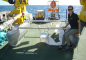 Mit Hilfe der Crew wurde zweimal täglich ein Katamaran (Abbildung 3) und ein ULW (underlying water) Netz (Abbildung 4) ausgesetzt, um Proben vom Oberflächenwasser und einer Referenztiefe von 1 m zu nehmen.