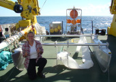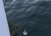 Unsere Aufgabe ist also nicht einfach. Wasser aus der obersten Schicht des Ozeans zu entnehmen, wenn die Oberfläche in Bewegung ist und man sich auf einem Schiff befindet, das sich ebenfalls bewegt, ist äußerst schwierig. Das Schiff selbst ist auch nicht frei von den „surfactants“, und es besteht die Gefahr, dass die Proben verunreinigt werden, so dass man bei der Entnahme und Lagerung der Wasserproben sauber und vorsichtig arbeiten muss.