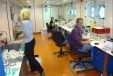 Die Kerne werden dann in den Laboren aufgearbeitet, etwa um den Methangehalt der Sedimente zu bestimmen oder die Konzentrationen von Sulfid und Sulfat, die an der Umsetzung des Gases beteiligt sind. Die Beprobung zur Gewinnung des Porenwassers sieht recht klinisch aus muss teilweise bei Temperaturen von unter 2°C im Kühlraum erfolgen. Das Geochemielabor ist wegen der vielen gewonnenen Sedimente im Dauerbetrieb. An einigen der Proben werden auch die Methanbildungs- und Zehrungsraten gemessen. Dazu werden die für die Reaktionen jeweils notwendigen Ausgangsstoffe zugegeben, und zwar in Form radioaktiv markierter Substanzen. Nach einiger Zeit kann dann gemessen werden, wie viel radioaktives Methan gebildet oder aber radioaktives Sulfat verbraucht wurde. Aus dem letzeren kann man dann direkt die Methanzehrungsraten ermitteln. Diese Arbeiten erfolgen im eigens hierfür installierten Isotopencontainer, einem der am wenigsten besuchten „Labore“ des Schiffes. Die langen Sedimentkerne werden in 1m lange Stücke gesägt und halbiert. Dann erfolgt eine komplette Kernbeschreibung, ein hochauflösende Fotographie der Oberfläche und schließlich einige Instrumente, die mm-genau etwa die magnetischen Eigenschaften, die Scherfestigkeit, oder die Leitfähigkeit durch die Sedimente hindurch erfassen können (Kernlogger).