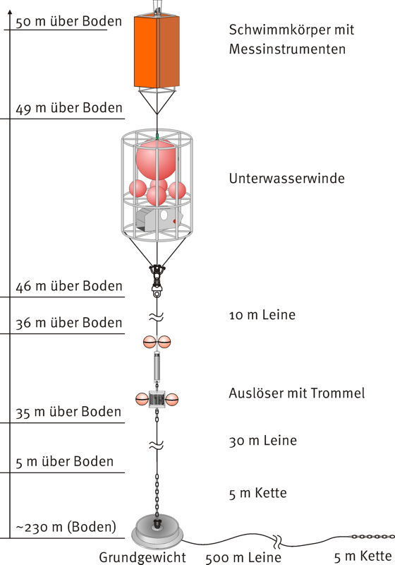10. August 2010 Winde, Schwimmkörper und Auslöser an der Oberfläche.