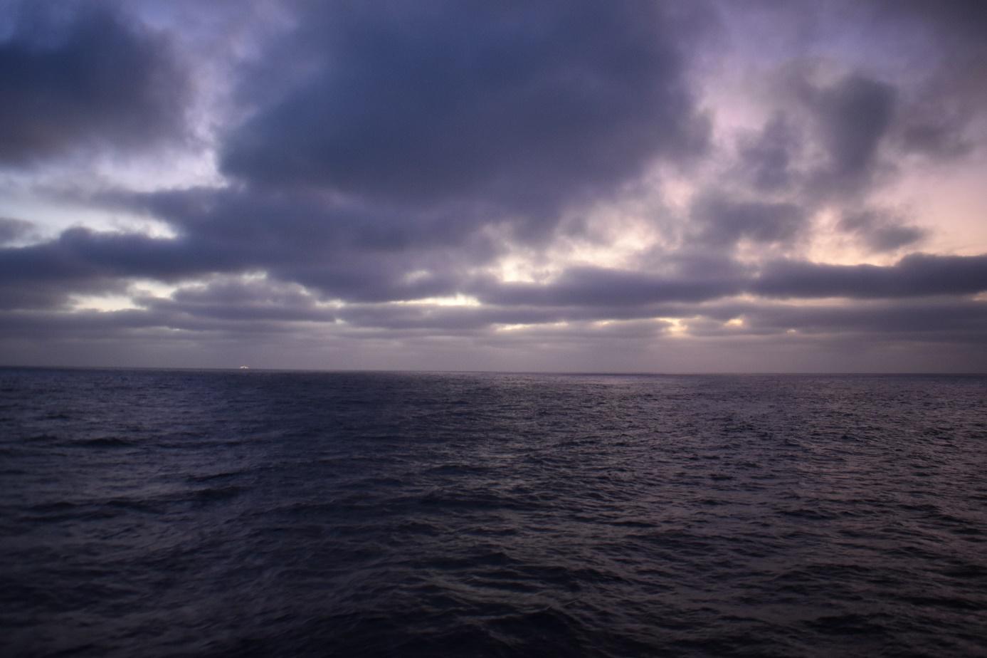 Die See hier im Angolabecken ist recht ruhig. Mittlerweile sind wir auch soweit von der Küste entfernt, dass wir kaum noch Tiere zu Gesicht bekommen. Noch nicht mal Seevögel sind auszumachen. Eines Morgens jedoch taucht eine Gruppe Delphine neben dem Schiff auf. Diese Schule, bestehend aus 20 - 25 Tieren und begleitet uns für eine Viertelstunde, bis sie schließlich das Interesse an uns verlieren und in eine andere Richtung weiter schwimmen.
