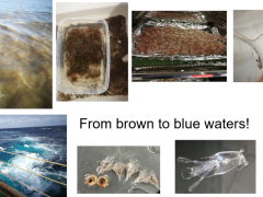 Die Mesozooplanktonfänge über unser Multinet zeigten bereits, dass wir in den lichtlimitierten, detritusdominierten braunen Gewässern des Amazonasmündungsgebietes (Bild 3, obere Reihe) im Vergleich zu den grünen und blauen Gewässern weiter unten in der Amazonasfahne (Bild 3, untere Reihe) weitgehend unterschiedliche Gemeinschaften haben. Unsere Hypothese ist, dass die Stabilität des Habitats zusammen mit der Nahrungsqualität Veränderungen in der Struktur des Nahrungsnetzes und in der Effizienz des Massen- und Energietransfers zwischen den trophischen Ebenen in diesen unterschiedlichen Gewässern auslösen kann. Warten wir auf die EA-IRMS- und GC-C-IRMS-Ergebnisse, um das Nahrungsnetz-Puzzle wieder zusammenzusetzen und diese Hypothese aufzulösen!