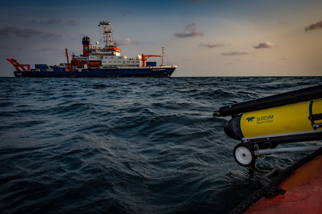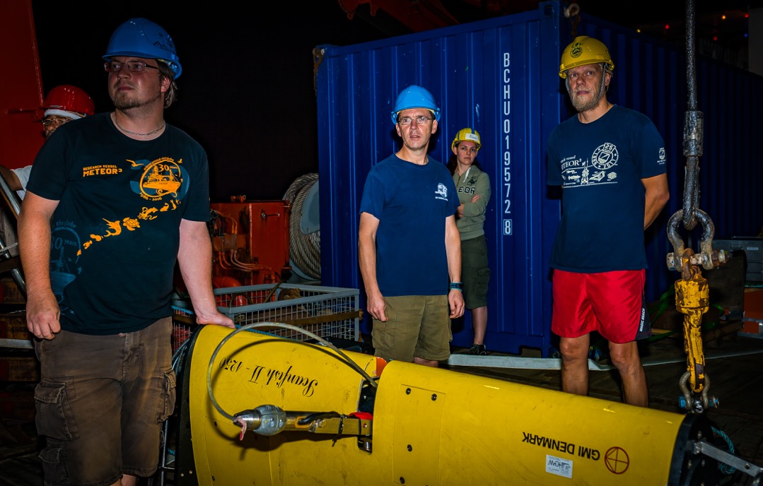 Fünf Mitarbeiter des IOW waren kürzlich auf Expedition mit dem Forschungsschiff METEOR. Die Fahrt startete am 7. Oktober in Recife und führte entlang 11° südlicher Breite von West nach Ost in das Küstenauftriebsgebiet vor Südwestafrika. Im Forschungsgebiet vor Namibia hat das IOW-Team drei Verankerungen aufgenommen und erneut ausgelegt. Zudem haben die Wissenschaftler und Techniker mit der Mikrostruktursonde kontinuierlich Temperatur, Salzgehalt und Turbulenz in den Auftriebsgebieten gemessen.