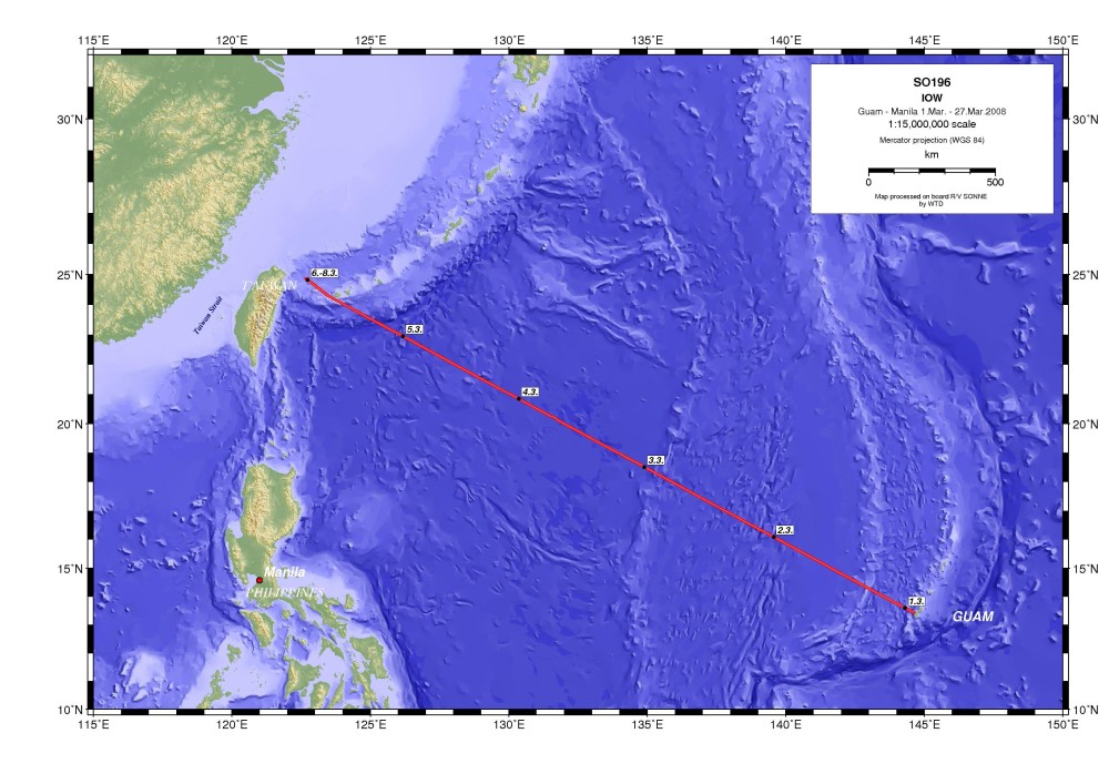 Ziel der Fahrt ist der tiefe Bereich des Ostchinesischen Meeres zwischen Japan und Taiwan, der so genannte Okinawa-Trog. Hier tritt in drei Gebieten zwischen 1200 bis 1600 m Wassertiefe flüssiges Kohlendioxid aus - ein weltweit einzigartiges Vorkommen.