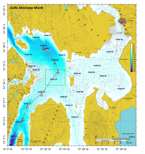 - Arbeitsgebiet 2: Der Golfo Almirante Montt ein anoxischer Fjord mit stratifizierter Wassersäule, in dem beide Fragestellungen untersucht werden.