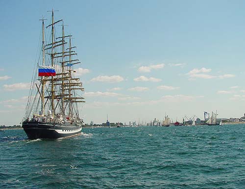 Hanse Sail 10. August 2003 Hafeneinfahrt, Segler, "Kruzenshtern" & "Crystal Symphony"