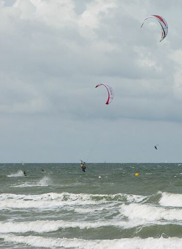 Hanse Sail August 2005 Kite Surfer vor Warnemünde