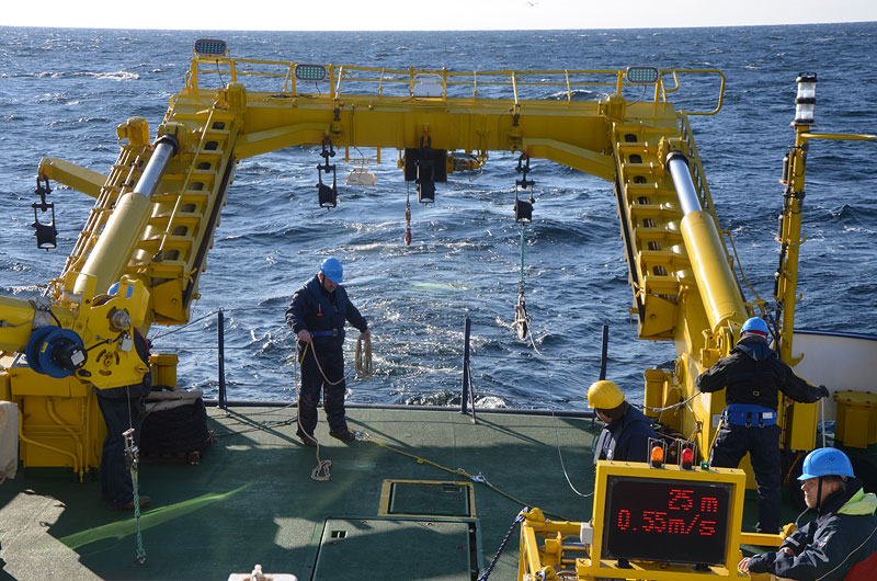 18. März 2013 Terminfahrt im März: Der Scanfish verschwindet im Wasser