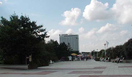 Die Strandpromenade und das Neptun in Warnemünde am 14. September 2001