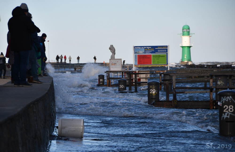 02. Januar 2019 Hochwasser in Warnemünde, Alter Strom