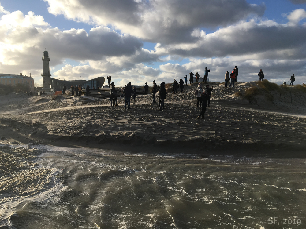 02. Januar 2019 Hochwasser in Warnemünde, Strand