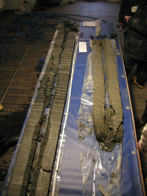 Mecklenburger Bucht, 27.03.06, 13:50 Uhr - Liner des MUC gefüllt mit Sedimenten der Mecklenburger Bucht.