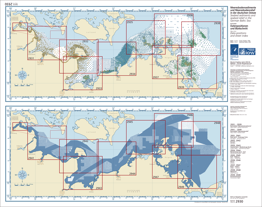 Erstmalig in Deutschland hat das Bundesamt für Seeschifffahrt und Hydrographie (BSH) gemeinsam mit dem Leibniz-Institut für Ostseeforschung Warnemünde (IOW) Sediment- und Reliefkarten für das gesamte deutsche Ostseegebiet veröffentlicht. Die Karten enthalten Detailinformationen über die Beschaffenheit und Gestalt des Meeresbodens. Das BSH unterstützt mit diesen Karten die maritime Raumordnung der Ostsee, die Seevermessung im Küstenmeer und in der ausschließlichen Wirtschaftszone (AWZ), Aktivitäten zur wirtschaftlichen Nutzung des Meeresbodens wie etwa der Errichtung von Windparks oder der Verlegung von Kabeln und Pipelines, die weitere Verbesserung der Sicherheit der Seeschifffahrt, Monitoring- und Forschungsaktivitäten, aber auch Maßnahmen des Umwelt- und Küstenschutzes. Die Informationen in den Sedimentkarten tragen dazu bei, Nutzungskonflikte in der Ostsee zu entschärfen.