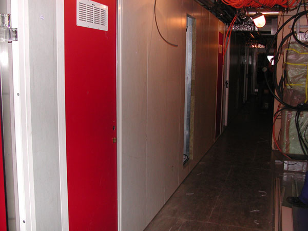 Einige Gänge, hier das 'rote' erste Aufbaudeck sind bereits mit Türen ausgestattet