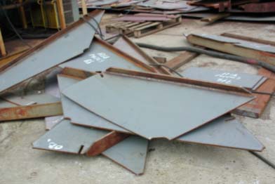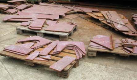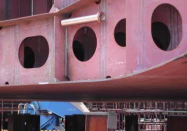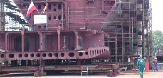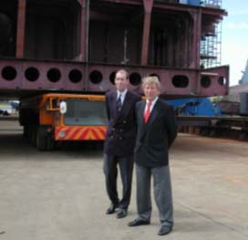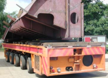 ...das erste größere Teil einer Sektion liegt auf dem Tieflader bereit zur Kiellegung...