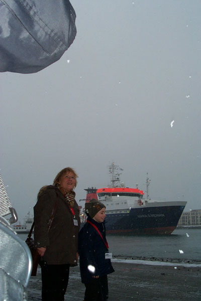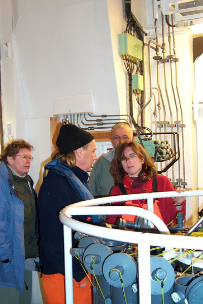 Dr. Ronski vom Alfred-Wegener-Institut für Polar- und Meeresforschung Bremerhaven bespricht mit Herrn Bosselmann den Einsatz des CTD