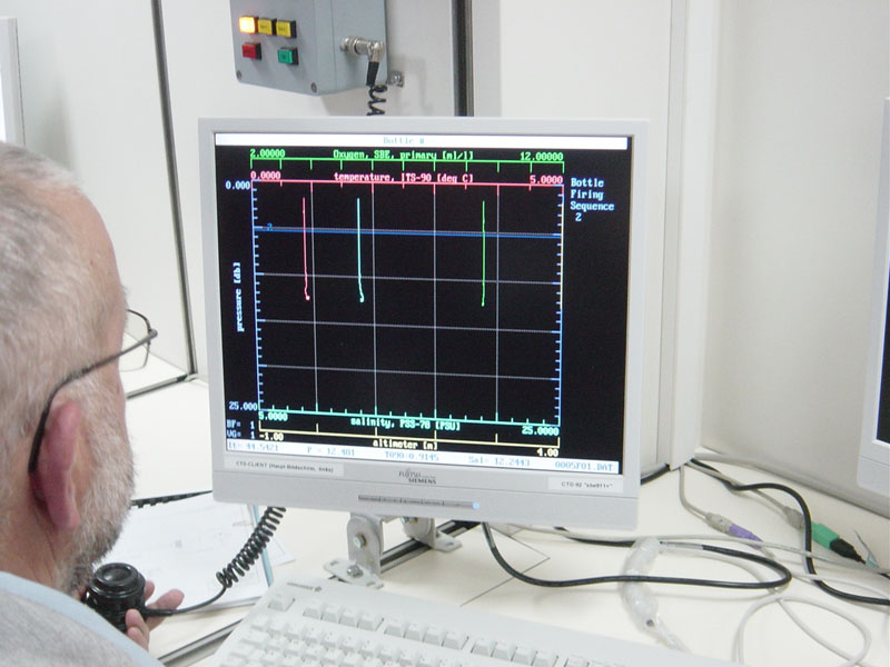Am Monitor werden die Messdaten der CTD-Sonde verfolgt