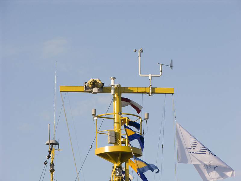 Von achtern, mit Schleppkörper des Seemagnetographen