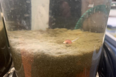 Some giant sulfur bacterial species form thick white mats on the sediment surface and act as hydrogen sulfide filters at the transition between sediment and water column. How much of the toxic hydrogen sulfide now reaches the water column from the sediment via the bacterial filters depends on many different factors in addition to the activity of the cells. One of these is the oxygen itself, which is used (chemically oxidized) in the conversion of the hydrogen sulfide (chemically reduced). If oxygen is no longer available, many sulfur bacteria can also resort to other substances such as the nitrogen compounds nitrate and nitrite. However, the metabolic pathway by which nitrogen is used coupled with the conversion of hydrogen sulfide and how this affects the capacity of these bacteria to oxidize hydrogen sulfide is still poorly understood. To investigate and better understand this is part of the research of Dr. Jenny Fabian, postdoctoral researcher in the Geomicrobiology group, led by Heide Schulz-Vogt. Together, the two are investigating which different species occur here in the upwelling area and how this varies with the respective environmental conditions. Furthermore, incubations of single Thiomargarita sp. cells take place on board to investigate their cell metabolism. This includes especially the coupling of their sulfur and nitrogen metabolism.