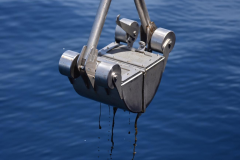 The Van-Veen grab sampler and the Multicorer (MUC) are devices used to collect sediment from the seabed and transport it to the surface. The Van-Veen grab sampler is basically a giant dredging bucket that is lowered into the water by a rope from the ship. When the grab sampler touches the seabed, the rope between the buckets is released, causing them to close, digging out sediment. After the grab sampler and its contents are returned on board, the sediment is washed over a sieve. Larger bottom-dwelling marine organisms, technically known as marrow invertebrates, remain in the sieve and are thus available for further analysis. In the so-called MUC, on the other hand, a defined sediment surface is cut out of the seabed using Plexiglas-tubes. We then either sample these directly or use the material for further experiments.
