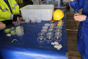 The contents of the tubes are transferred centimetre by centimetre into large Petri dishes and secured for later examination in Kiel. Henriette Kolling coordinates the sampling. She is particularly interested in biomarkers in the sediments - witnesses in the form of microfossils or special molecules that are considered to indicate very specific environmental conditions. In this way, conclusions can be drawn about the respective climatic regime. In combination with an age dating, it is then possible to assign them to one of the known post-glacial climate periods - such as the "Medieval Warm Period" or the "Little Ice Age". Everyone on board would like to have this information immediately! But the analysis is done at home. The most important thing is that the samples have been obtained and secured!