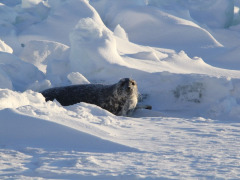 Faced with a frozen rigid landscape that extends more or less unchanged to the horizon, the comparison with a desert comes to mind. Are we alone here? Of course not! On the horizon, icebreakers are making their rounds and grey seals with their offspring are visible as small dark dots on the ice floes. And if you have a good tele lens, you can also see them up close.