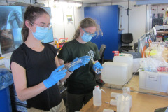 Let’s have a look at phytoplankton living in an environment where both 14N and 15N are available. As it is easier to process, the phytoplankton starts consuming the 14N, leaving the remaining water enriched in 15N. It could therefore be possible to differentiate an environment with phytoplankton from one without! And this only from looking at the ratio between isotopes. In addition, it is also possible to measure exactly how much of a nutrient (e.g. nitrate or ammonium) is taken up by phytoplankton by purposely enriching its environment in 15N (which you can buy, for example as 15N-nitrate), and measuring after an incubation time the changes in phytoplankton isotopic composition. This enrichment technique can be done thanks to nutrients chemically transformed to no longer contain the light isotope.