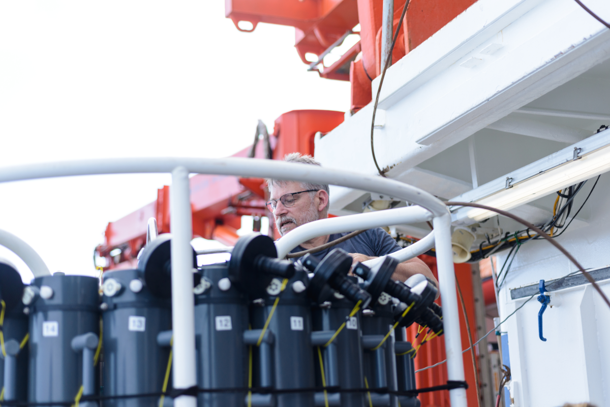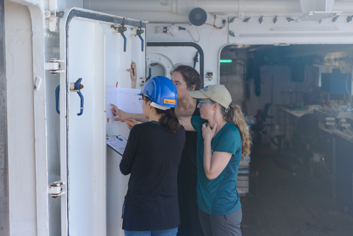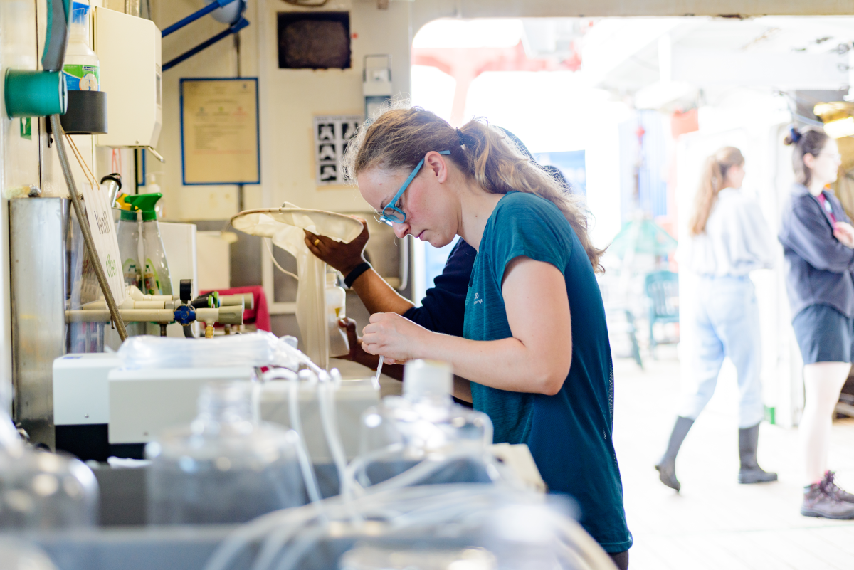 But enough of sleeping and sitting around! After a copious breakfast, we put our safety shoes on and started unpacking the containers. Everyone gave a hand to carry boxes up and down to the different laboratories. Little by little, a wide variety of experimental set up was installed. As the swell should never be underestimated, every instrument has to be secured.