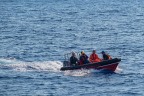Of course there is always something to see around the ship: impressive cloud formations, especially in the fast changing weather conditions, birds hunting for fish and of course the ever-changing sea, sometimes rough with waves, sometimes mirror-smooth. A good opportunity for a boat trip arose when the new engine of the working boat had to be run in. Many of us used this as a chance to admire our beautiful research vessel SONNE from the outside – a really impressive sight in the middle of the sea.