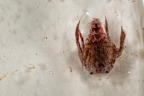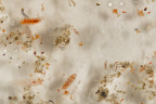 Once the plankton net or the multi closing net are back on board every nets beaker is emptied into a dish for inspection under the microscope. On emptying the beaker walls are rinsed with filtered seawater to get samples that stick to the wall also into the dish. Under the microscope a whole microcosm of organisms can be seen. We only can show photographs taken with a camera and macro lens and crops of such photos, under the microscope the inividual specimen can be viewed in more detail.