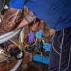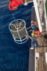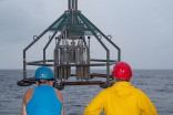 Once the water samples are on board, the next step was to sample the ocean floor. For this we have a "Multi-Corer" (MUC for short) on board, which can pull eight half-metre sediment cores at once. When the MUC is back on board, the sample tubes must be carefully removed so that no sample is lost – a tricky business anyway that doesn't get any easier when a heavy tropical rain pores down. But even in such downpours it remains warm and fortunately the weather changes quickly, so that it usually clears up pretty soon and we can once more enjoy blue skies with circling seabirds.