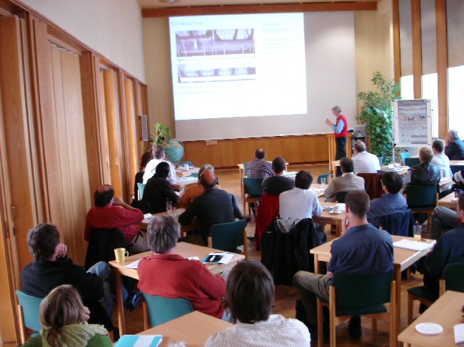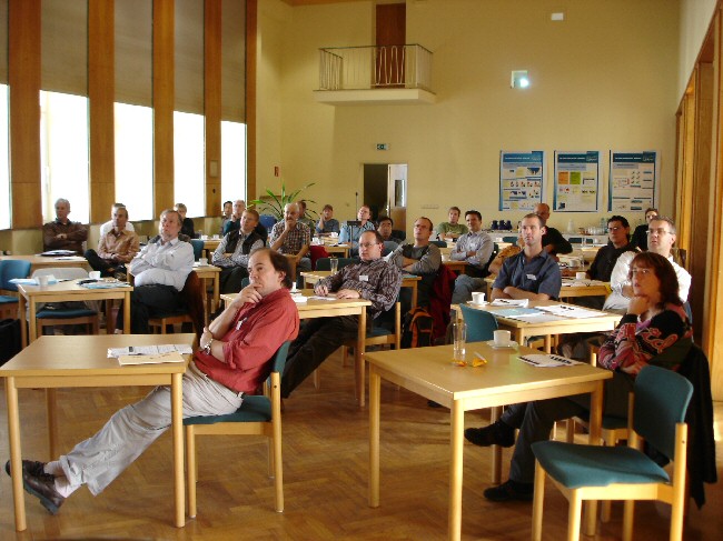 The lecture hall of IOW, people listening to a presentation
