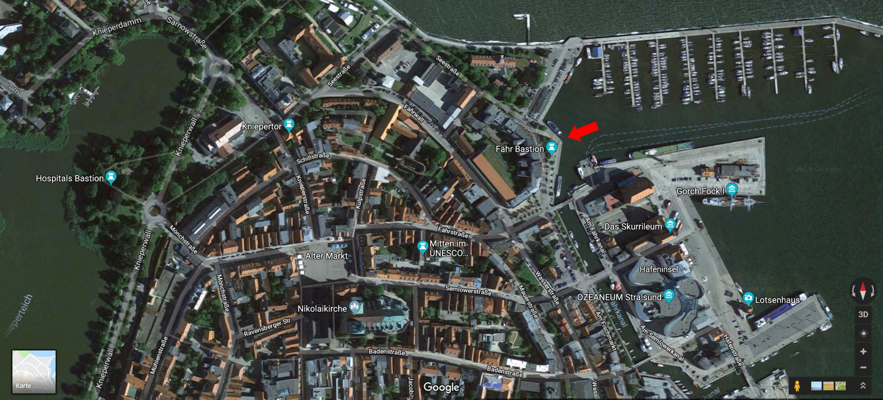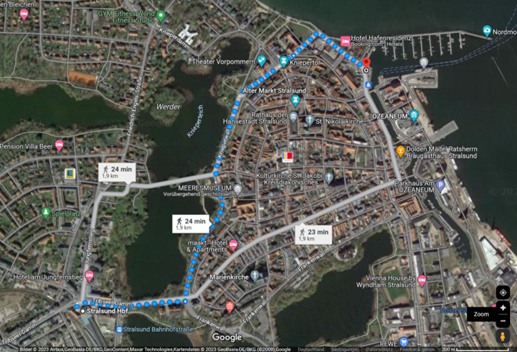 When you have reached Stralsund main station by train you can walk from the train station to the harbor (about 25 min, see map). You can also take bus number 6 from the train station to the harbor (goes every 30 min) or a taxi. You can buy the ferry tickets directly at the jetty (look for “Reederei Hiddensee”, see map).
