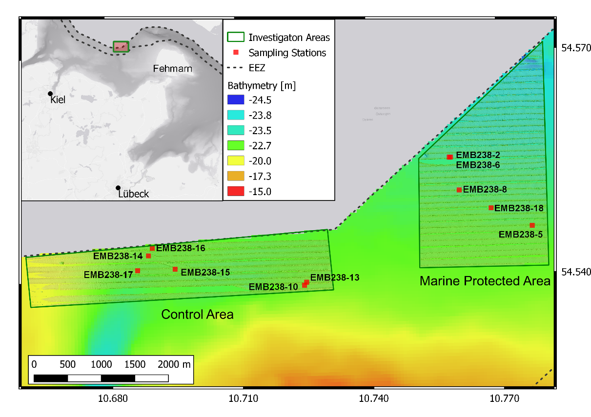 Vom 26.05. bis 09.06.2020 haben unsere Wissenschaftlerinnen und Wissenschaftler eine erste Expedition mit der Elisabeth Mann Borgese (Expedition EMB238) zum Naturschutzgebiet (NSG) Fehmarbelt unternommen. Die Fahrt ist die erste Aufnahme aller Komponenten des benthischen Nahrungsnetzes innerhalb und außerhalb des NSGs. Es wurden unter anderem Proben zur Untersuchung der Biogeochemie, von im Sediment sitzenden Mikroorganismen, winzigen bis mittelgroßen, wirbellosen Tieren und kleinen Algen genommen. Auch die Morphologie der Sedimente selber wird untersucht zudem finden geoakustischen Aufnahmen des Meeresbodens statt.