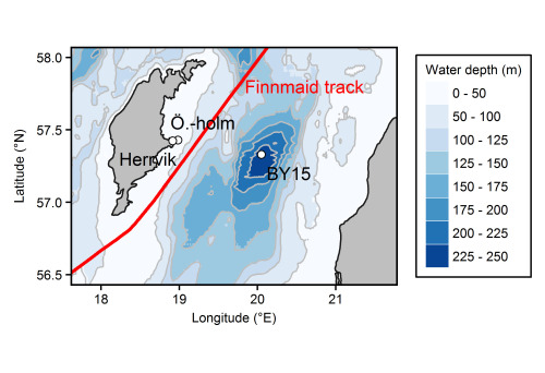 In the coming year, during the summer months from the beginning of June to the end of August, Jens Müller, on his sailboat Tina V, will be voyaging back and forth daily between Östergarnsholm and measuring station BY15 (see map) in order to study the blue-green algal blooms. With the help of this new, expansive information, he can improve and better understand surface water data already collected through automated measurements on the voluntary observing ship Finnmaid (red line) and satellites.