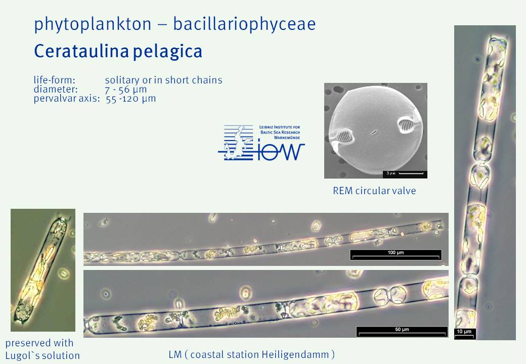 Like in autum 2009, diatoms dominated also in autumn 2010, whereas the otherwise bloom-forming dinoflagellates (Ceratium spp.) were almost completely absent. The most important diatoms on 5.10.2010 (week 40) were: Chaetoceros socialis (793 mg m-3, Image 6), Cerataulina pelagica (418 mg m-3) , Pseudosolenia calcar-avis (376 mg m-3, Image 7), Pseudo-nitzschia spp. (324 mg m-3) and Chaetoceros curvistus (135 mg m-3)