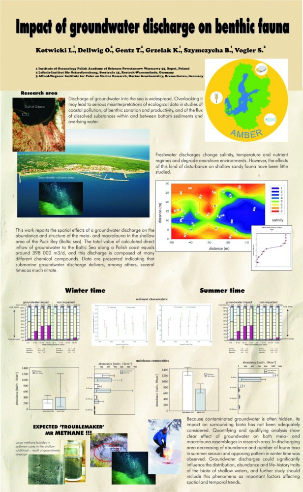 Lech Kotwicki, Szymczycha B., Vogler, S., Grzelak, K., Czub, M., Dellwig, O., Gentz,T., 2011: Groundwater seepage impact on biota. BSSC 2011, 22-26 August, 2011, St. Petersburg, Russia