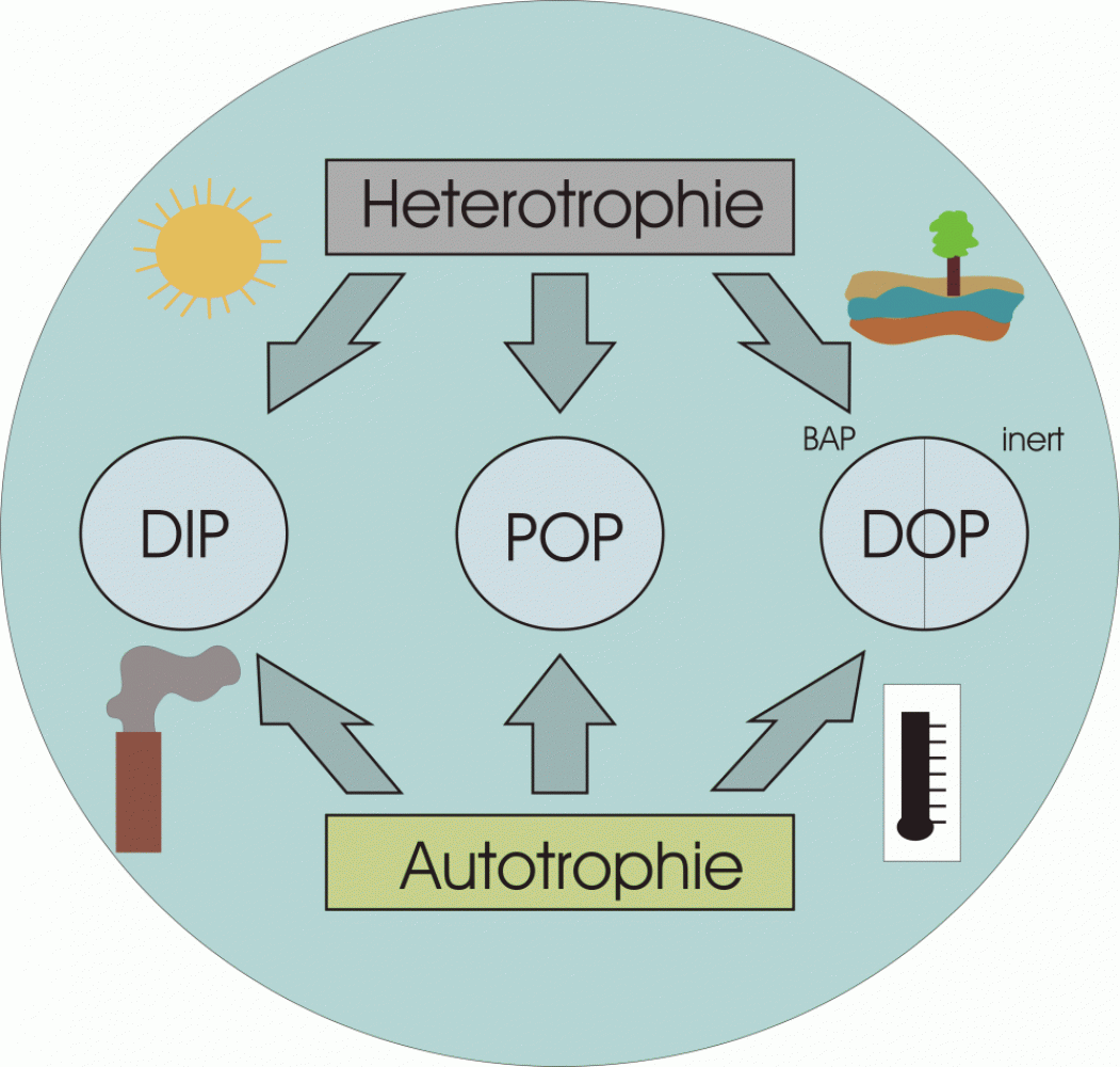 Phosphor ist für die Entwicklung von Algen und Bakterien ein essentielles Element und kann als limitierender Faktor die Phytoplankton- und Bakterienproduktion begrenzen.