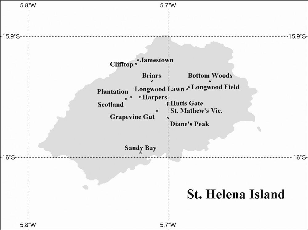 Air temperature and humidity signals of this region, modulated by upwelling-controlled sea surface temperature (SST), are carried by the trades towards St. Helena Island. The island’s 1893-1999 century-long monthly weather records of temperature, pressure and rainfall have been assembled and homogenized. They exhibit trends for decreasing precipitation (10mm/100yr), increasing air temperature (0.9°C/100yr), and decreasing air pressure (0.6hPa/100yr).