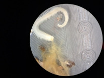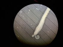 Dieser Prozess wird in mehrere Schritte unterteilt. Zunächst muss eine Probe gespült, also vom Gefahrenstoff Formaldehyd, der zur Konservierung genutzt wird, befreit werden. Dies passiert natürlich mit entsprechenden Sicherheitsvorkehrungen, also unter einem Abzug mit Schutzkleidung. Daraufhin werden in kleinen Portionen Teile der Probe unter einem Binokular durchgeschaut. Dabei besteht meine Aufgabe darin, alle Tiere rauszusammeln, taxonomisch auf Artniveau zu bestimmen und sie danach zu sortieren. Ist die Probe durchgeschaut, werden die gesammelten Tiere und ihre Artnamen nochmal überprüft, woraufhin die einzelnen Exemplare einer Art gezählt und protokolliert werden. Ist das geschafft, muss die Biomasse aller Tiere einer Art mithilfe einer akkreditierten Milligrammwaage gemessen und ebenfalls protokolliert werden.