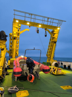 Durch den starken Bezug zur Ostseeforschung und die damit verbundene Nähe zum Meer spielt auch die Entnahme von Proben aus den lokalen Ökosystemen eine wichtige Rolle im Arbeitsalltag am IOW. Mehrmals durfte ich die Forschenden dabei unterstützen. Ich habe bei Messungen an Bord eines Forschungsschiffs geholfen und konnte auch von Land aus Wasserproben entnehmen. Ein besonderes Ereignis war für mich außerdem die Teilnahme an einer einwöchigen Forschungsausfahrt. Es war sehr interessant den Tagesablauf und die Arbeit auf einem Forschungsschiff kennenzulernen. Aber auch die Wellen und das Wetter auf einem Schiff zu erleben, war eine Erfahrung, die sonst nicht zum meinem alltäglichen Leben gehört. Während der Fahrt habe ich bei der Probennahme geholfen und durfte Sauerstoffmessungen im Labor durchführen. Außerdem konnte ich das Schiff erkunden und mir die Brücke mit ihren verschiedenen Geräten zur Navigation erklären lassen.