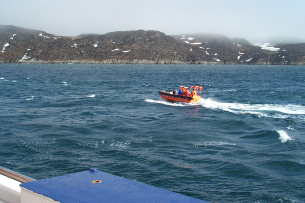 Der Seegang ist heute stärker als an den vorausgegangenen Tagen. Das merken die Passagiere des Rettungsbootes sofort. Gottlob ist das Ziel - das Ufer des Fjordes - nicht weit.
