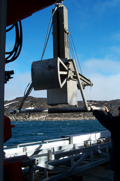 Als nächstes Gerät kommt der Box Corer (Kastengreifer) zum Einsatz. Mit ihm wird der Meeresboden beprobt. Mit dem schweren Kasten wird ein Stück Meeresboden ausgestochen und an Deck geholt. Durch Sichtklappen lässt sich dann die Struktur und Besiedlung des Meeresbodens betrachten.