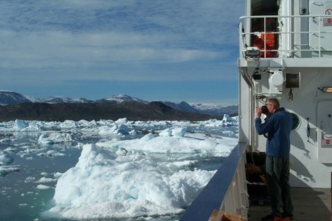Bei einer solchen Kulisse hält es selbst Sören Rysgaard, der in Grönland wohnt und deshalb an den Anblick gewöhnt sein sollte, nicht im Labor.