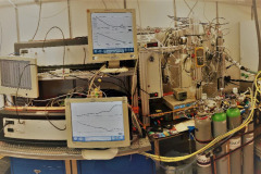 Ein Hauptfokus der Arbeitsgruppe sind die Konzentrationen der Gase Methan und Stickstoff in der Oberfläche, welche mobil, also autark während der Fahrt, mithilfe eines mobilen Equilibrator-Sensorsystemes (kurz MESS, ein manchmal wohlverdienter Name, da es leicht zu einem Durcheinander kommen kann) gemessen werden. Dipl. Ing. (FH) Michael Glockzin behielt aber beim Aufbau den Überblick über das MESS und so funktionierte bisher einwandfrei (ok, es gab hier und da mal kleinere Probleme, die aber schnell behoben werden konnten), was der Gruppe bis jetzt ein zufriedenes Lächeln ins Gesicht zauberte.