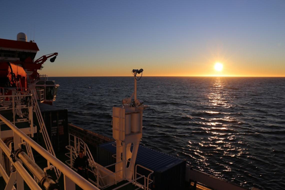 Svenja Papenmeier und Anina Hinz, die im wissenschaftlichen Team für die Sedimentakustik zuständig sind, haben die Nacht über sedimentakustische Profile aufgenommen, um eine Stelle zu finden, an der die Ablagerungen über dem Baltischen Eisstausee besonders dünn sind.